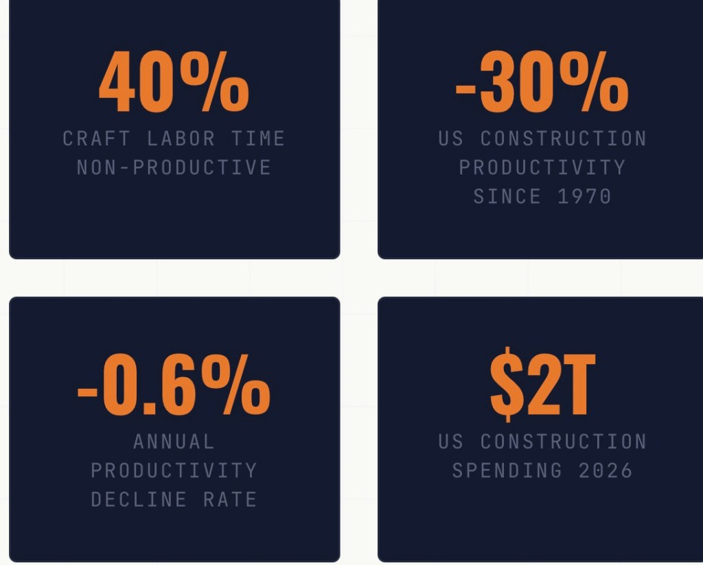 Roughly 40% of a construction worker’s time on site is non-productive. Not marginally unproductive. Not “could be optimized.” Forty percent — spent waiting, idle, reworking, walking to the wrong location, or standing around because materials aren’t staged, tools aren’t available, or the preceding trade hasn’t cleared the work face.
